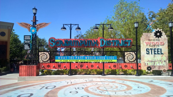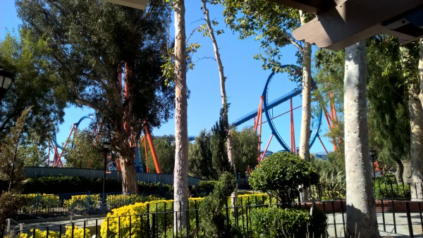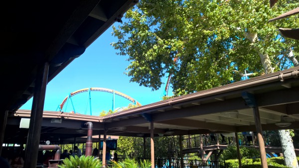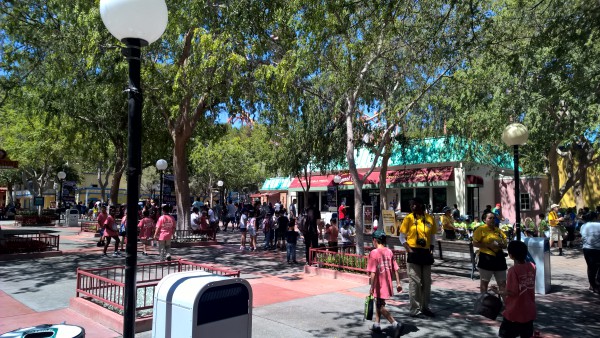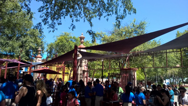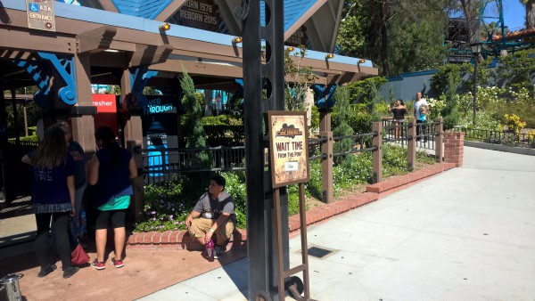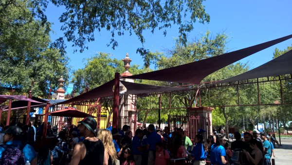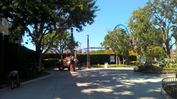 We headed to the gates and were pleased to see that there were no massive crowds trying to get in, or crowding pathways throughout the park. This was not a good day to be fighting crowds, the heat was enough of a challenge to overcome. Luckily, the crowd level was definitely manageable. We exchanged our vouchers for the actual pass and proceeded into the entry gates. I was pleasantly surprised that the park seems to be getting cleaner, and the view of the rides from the front of the park was stunning, all the rides were shining brightly in the blistering So Cal sun.